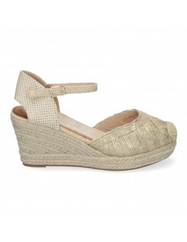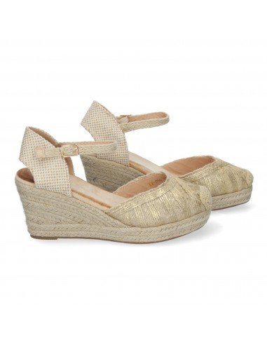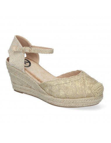 Sandalias de Cuña de Yute para Mujer, Cómodas y Elegantes, Punta Cerrada, con Adornos Trenzados en la Pala y Cierre de Hebilla.
