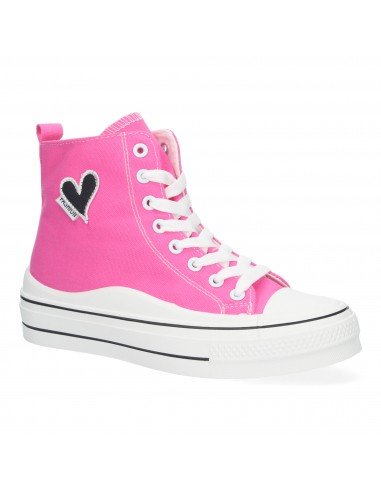 Zapatilla Abotinada para Mujer, Comoda, Detalle de Corazon Bordado, Material de Lona, y Cierre de Cordones