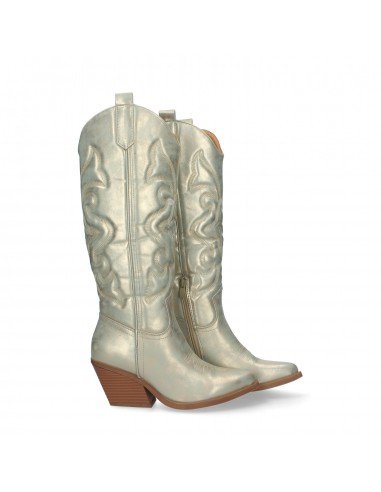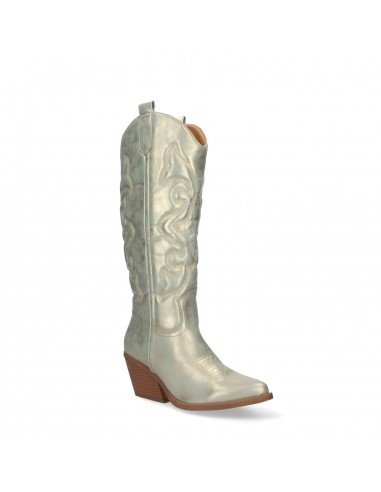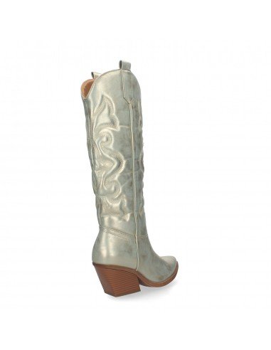 Bota para mujer con tacon cubano con grabado en caña y en la pala estilo cowboy