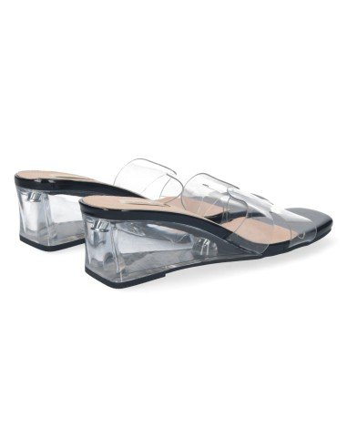 Sandalia de Cuña para Mujer, Comoda, con Material Transparente de Vinilo, y Talon Abierto