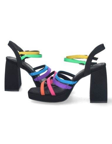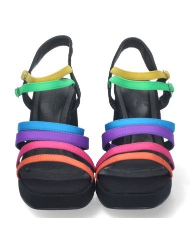 Sandalia de Tacon para Mujer, Comoda, con Pala de Tiras Multicolor, y Doble Cierre de Hebilla