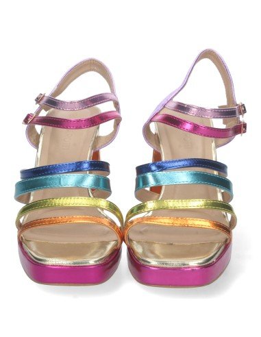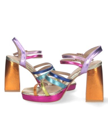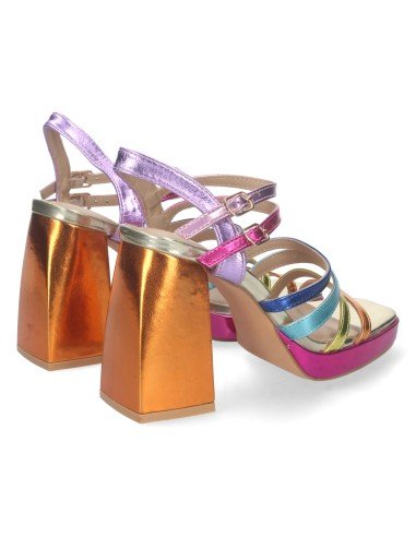 Sandalia de Tacon para Mujer, Comoda, con Pala de Tiras Multicolor, y Doble Cierre de Hebilla