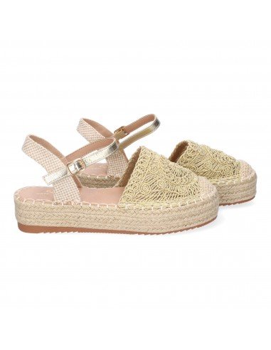 Sandalia de Plataforma para Mujer, Comoda, Forrada de Yute, Pala Cerrada y Entrelazada, Talón Abierto, y Cierre de Hebilla