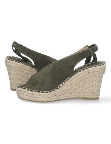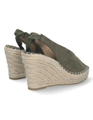 Sandalia de Cuña para Mujer, Comoda, Forrada de Yute, con Talon y Empeine Abierto, Cierre de Cordones, Primavera Verano 2023