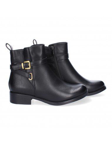 Botín de Tacón Cómodo para Mujer, Elegantes, Adorno de Hebilla, Puntera Redondeada y Cierre de Cremallera Lateral, Ideales para el Día a Día.