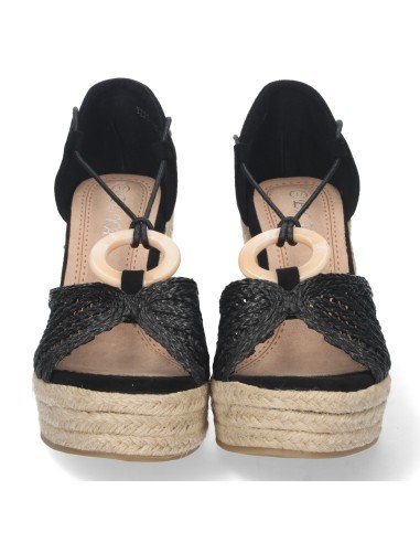Sandalia de Cuña para Mujer, Forrada de Yute, con Pala Abierta, Detalle en el Empeine y Cierre de Cordones, Primavera Verano 2022