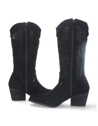 Bota de Tacon para Mujer, Comoda, con Calados en la Caña, y Cierre de Cremallera, Primavera Verano 2023