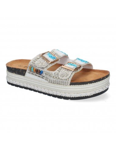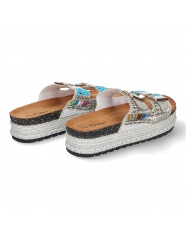 Sandalias para Mujer con Plataforma Cómodas y Elegantes, Decorada con Adornos Brillantes y Hebilla Ajustable.