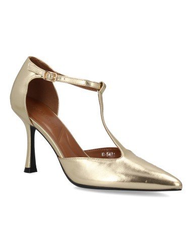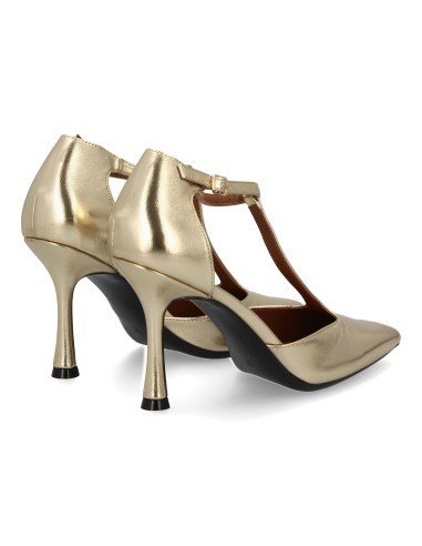 Stiletto de tacon fino diseño elegante. Zapato de salon con tacon alto y punta fina con hebilla y diseño en T. Ideal Otoño Invierno.