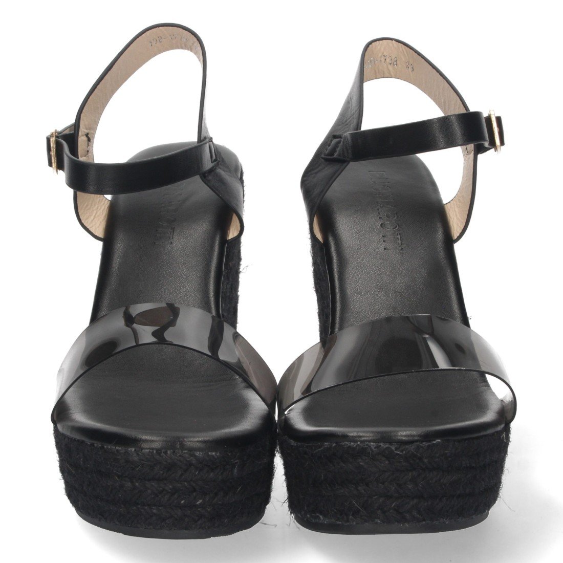 Sandalia de Cuña para Mujer, Forrada de Yute Pintado, Pala de Vinilo Transparente, y Cierre de Hebilla, Primavera Verano 2022