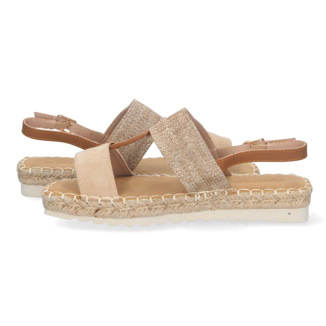 Sandalia Plana para Mujer, Comoda, Forrada de Yute, Doble Pala Unida, Talon Abierto, y Cierre de Hebilla