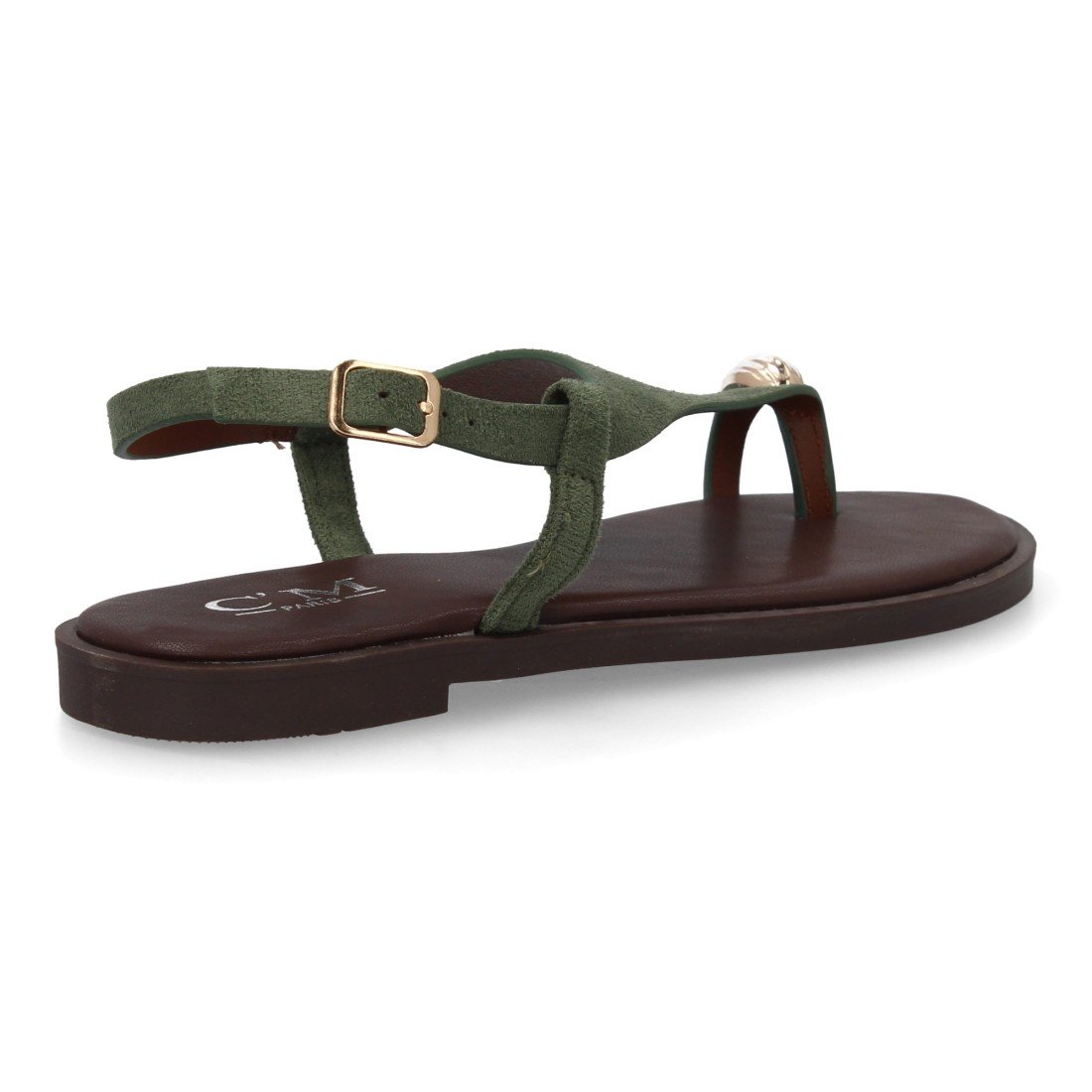 Sandalia plana de mujer con diseño elegante y minimalista, tira ancha que tapa el empeine. Adorno metálico. Muy cómodo. Cierre al tobillo con hebilla. Ideal Verano.