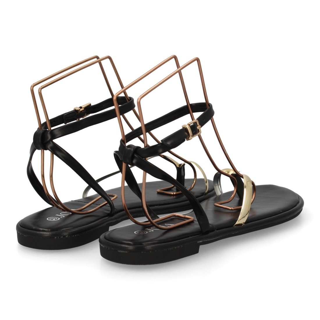 Sandalia plana de mujer con diseño elegante y minimalista, tiras finas que estilizan el pie. El cierre al tobillo con hebilla permite un ajuste seguro y cómodo. Ideal Verano.