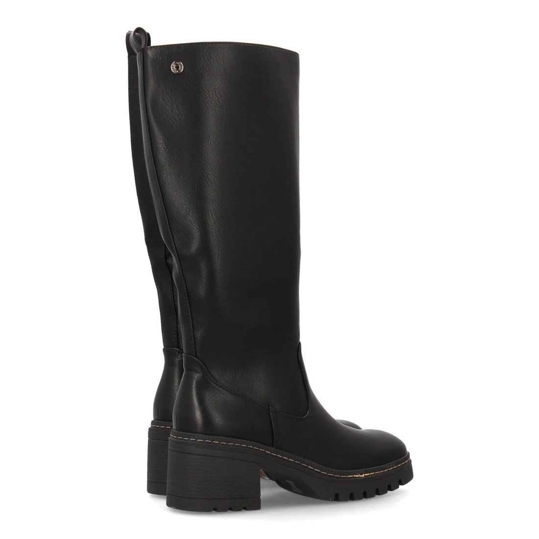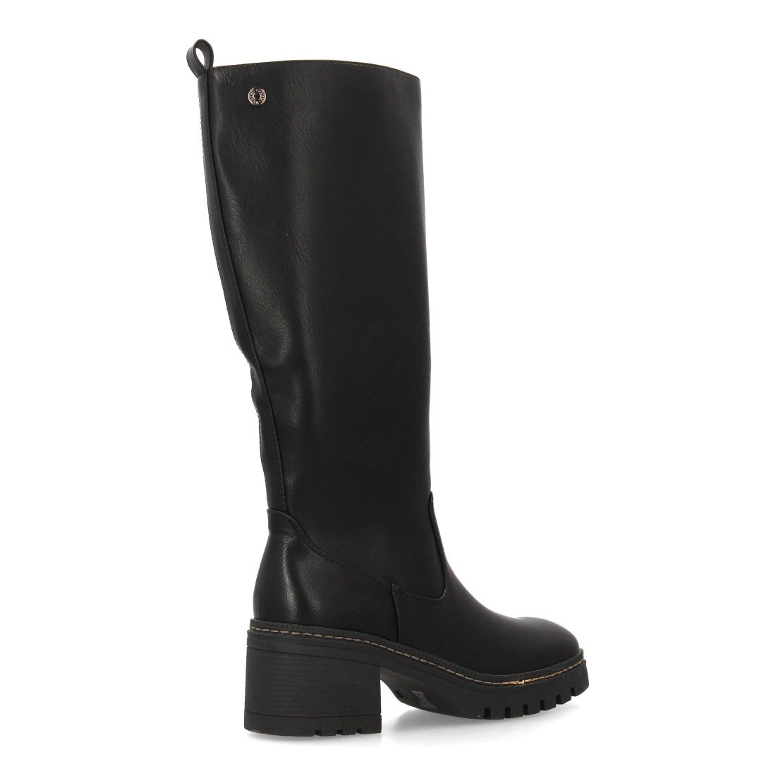 Bota de caña alta para mujer con diseño elegante. Cuenta con tacón ancho y suela dentada. Cierre de Cremallera interior ideal para la temporada de otoño invierno.