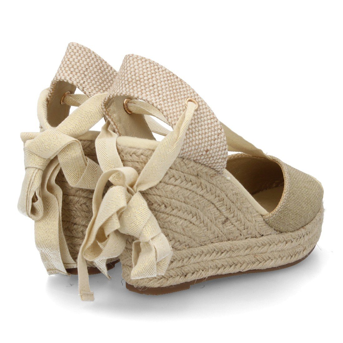 Alpargata sandalia de mujer con cuña de esparto para mujer, Cierre de cintas al tobillo o atadas por la pierna, ajustable, talon abierto, ideal primavera verano.