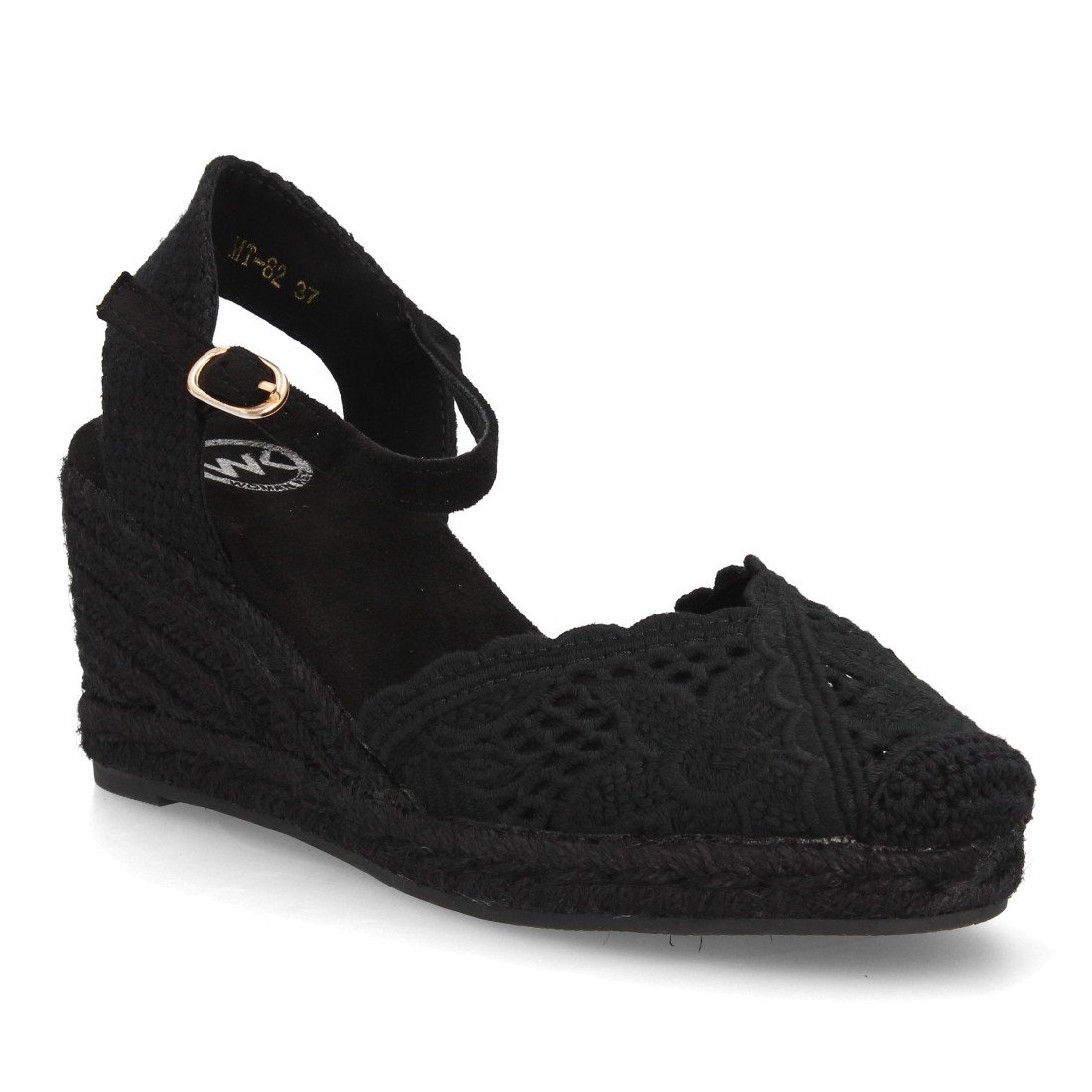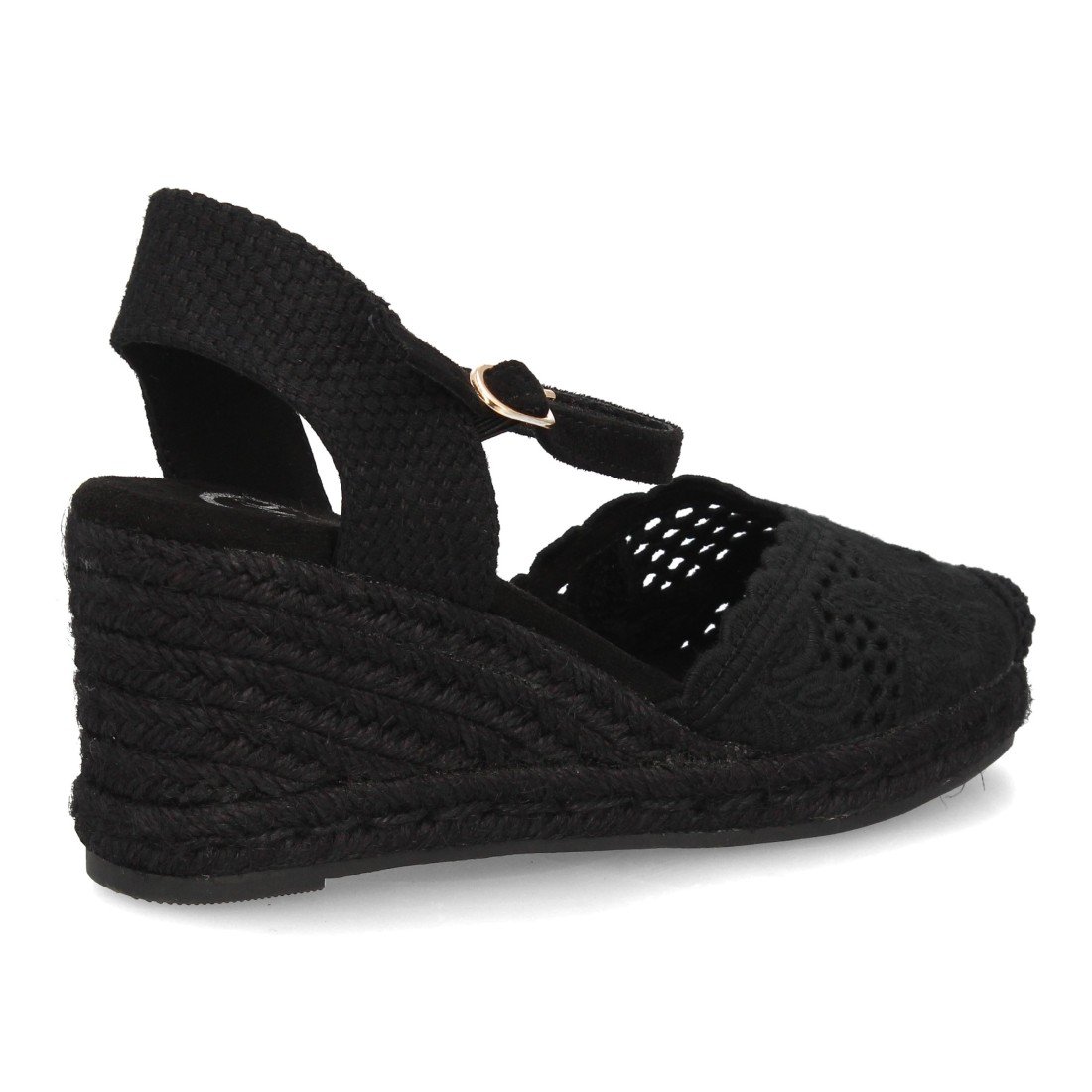 Sandalia valenciana tipo alpargata de cuña para mujer con diseño de adornos calados. Ideal primavera verano. Cierre de hebilla. Ideal para uso diario.