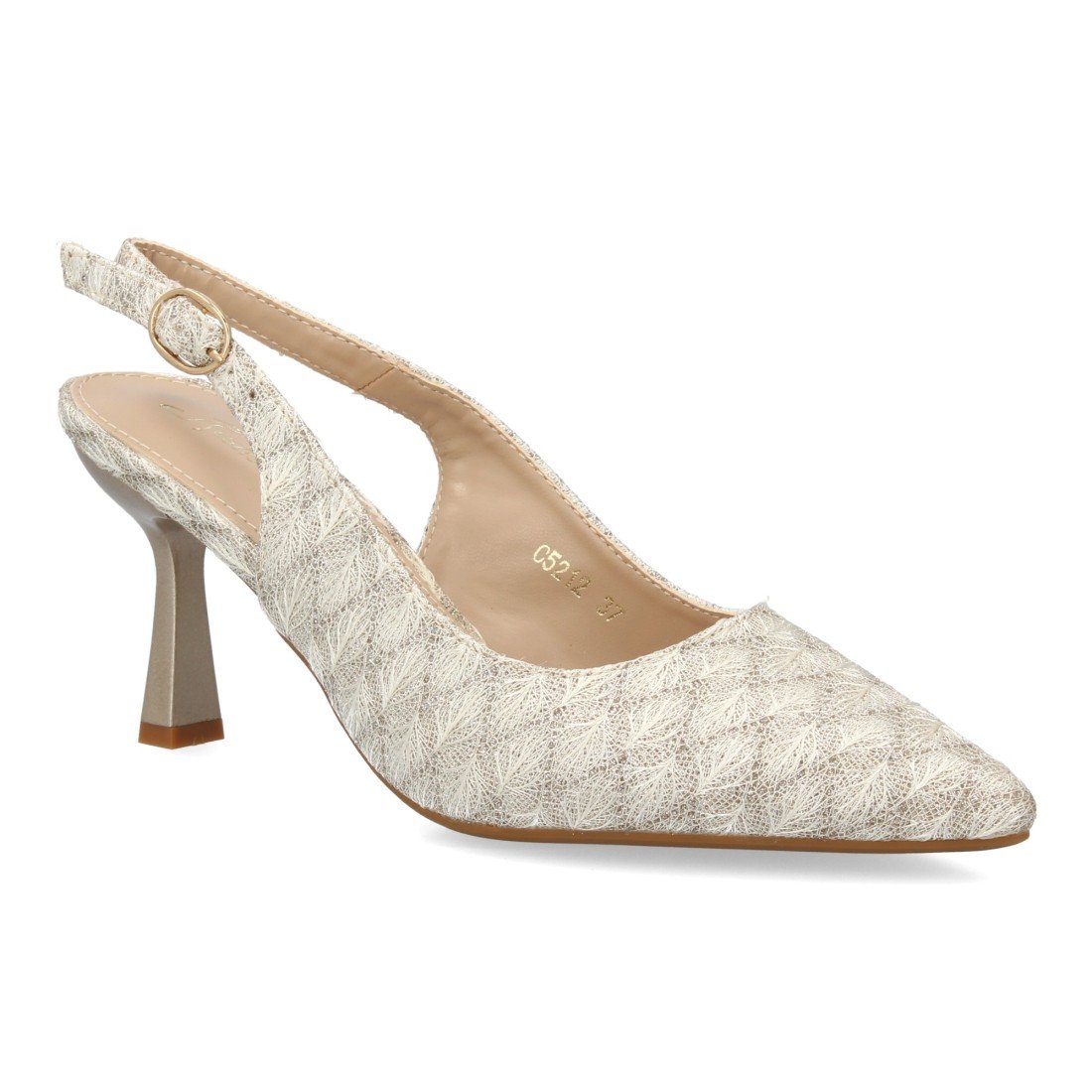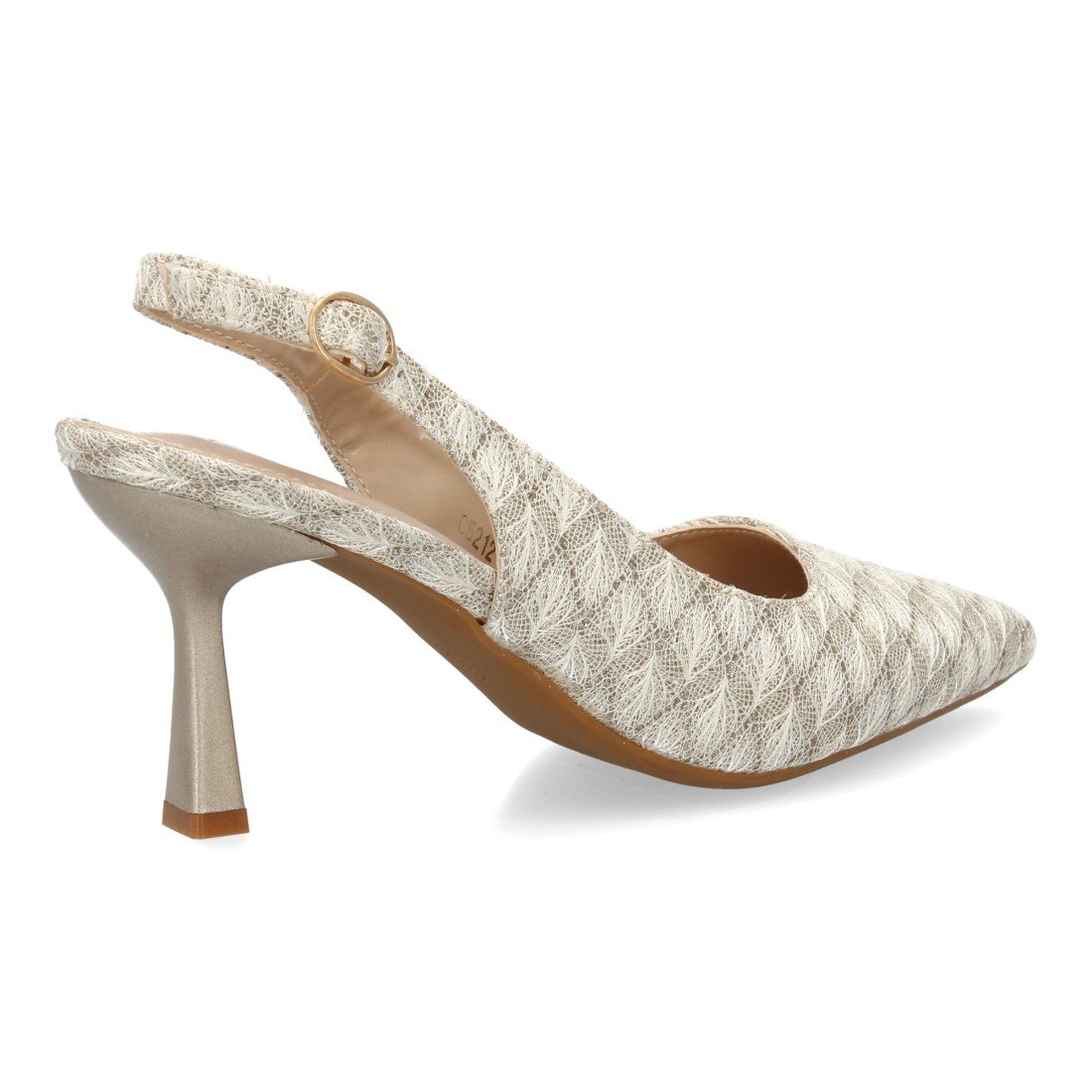 Zapato destalonado de tacón fino con punta cerrada para mujer. Diseño de punta fina y estampado de hilos en relieve. Cierre de hebilla en el tobillo.