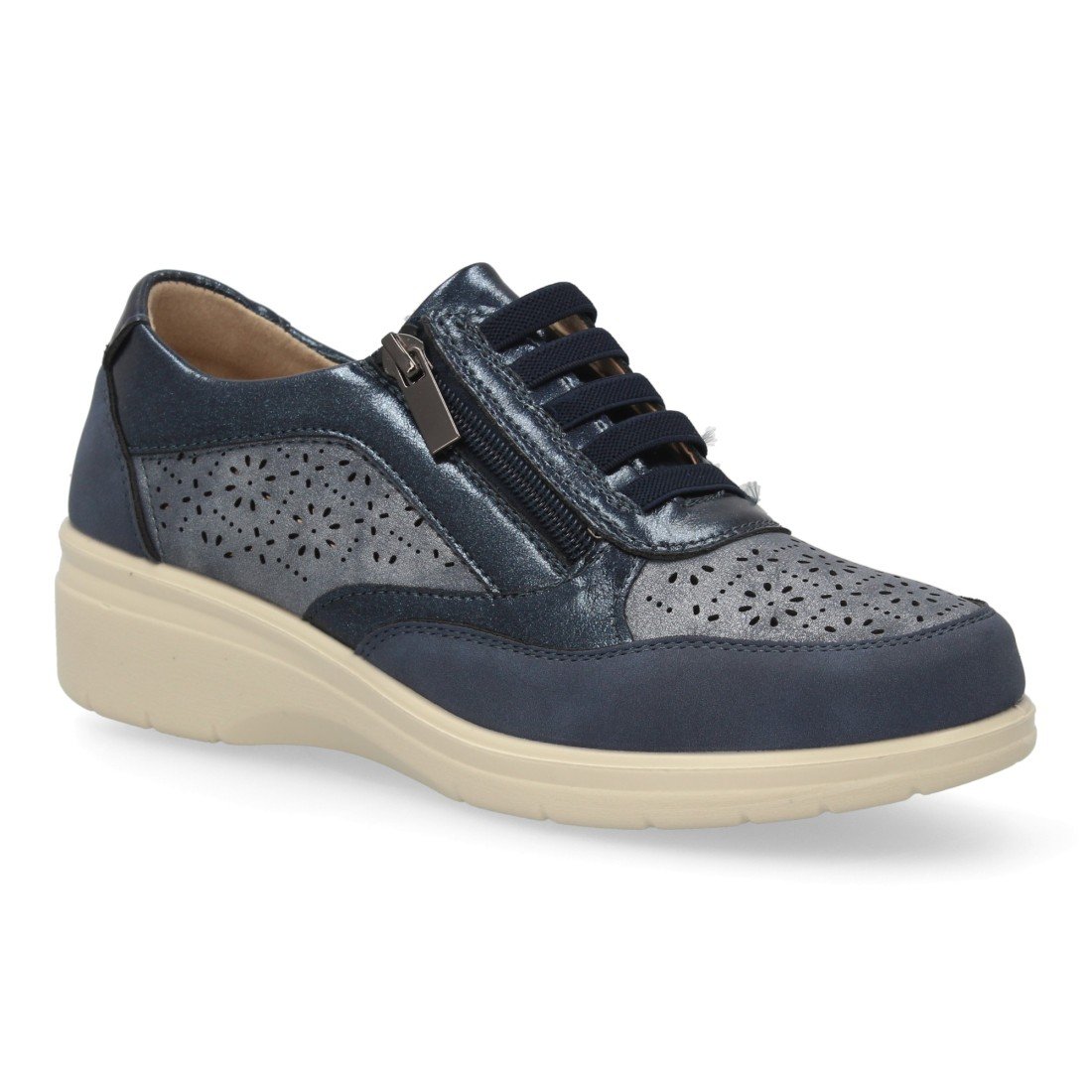 Zapatilla casual de mujer, muy comodas con cordones elásticos y cierre de cremallera seguro. Cuña ligera, con calados. Ideales para Primavera-Verano.