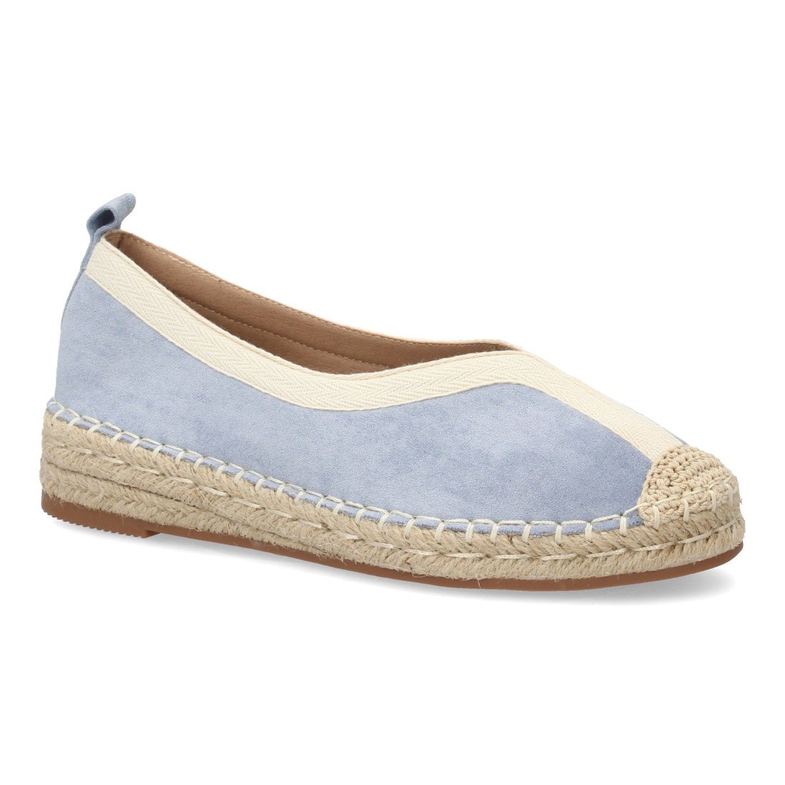 Alpargata plana de estilo tradicional para mujer, punta cerrada, sin cierre. Suela acolchada y cuña cómoda, ribete y la suela de yute, ideal primavera verano.