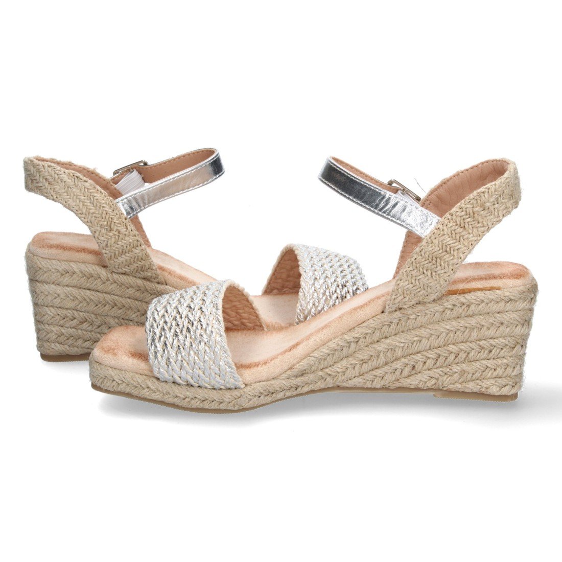 Sandalia de Cuña para Mujer, Comoda, Forrada de Yute, Pala Trenzada, y Cierre de Hebilla, Primavera Verano 2023