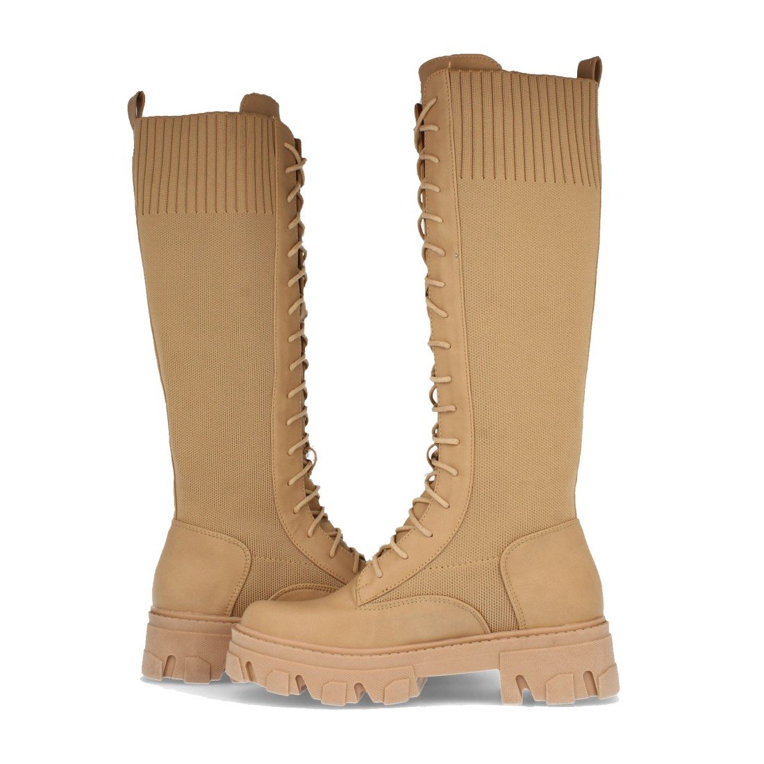 Bota de Plataforma para Mujer, con Elástico en el Gemelo, y Cierre de Cordones, Otoño Invierno 2021