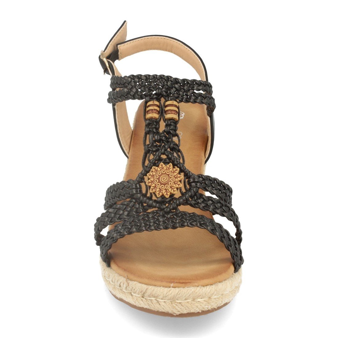 Sandalia de Cuña con Yute, Correa Trenzada y Hebilla