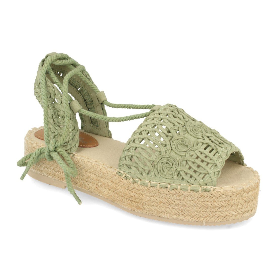 Sandalia Plana de Mujer, Forrado de Yute, con Pala de Rafia, y Cierre de Cordones, Primavera Verano 2021