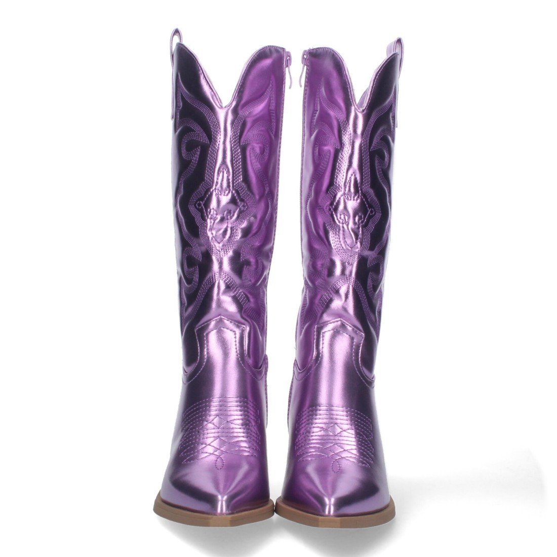 Bota de Tacon para Mujer, Comoda, Estilo Campera, con Bordado en la Caña, de Punta Fina, y Cierre de Cremallera