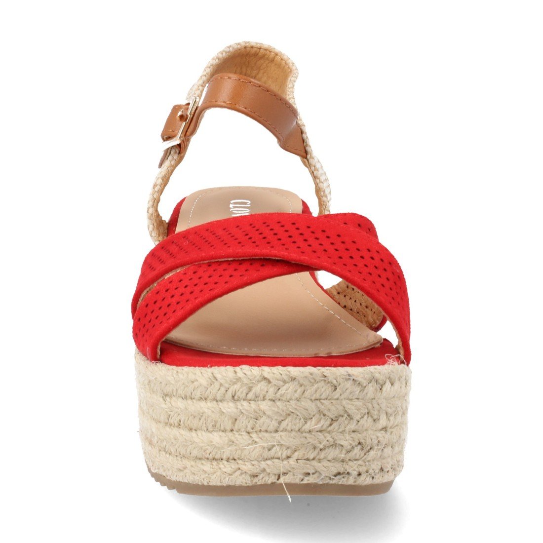 Sandalia de cuña en yute, con palas cruzadas y cierre de hebilla en el tobillo. Altura: 7 cm.