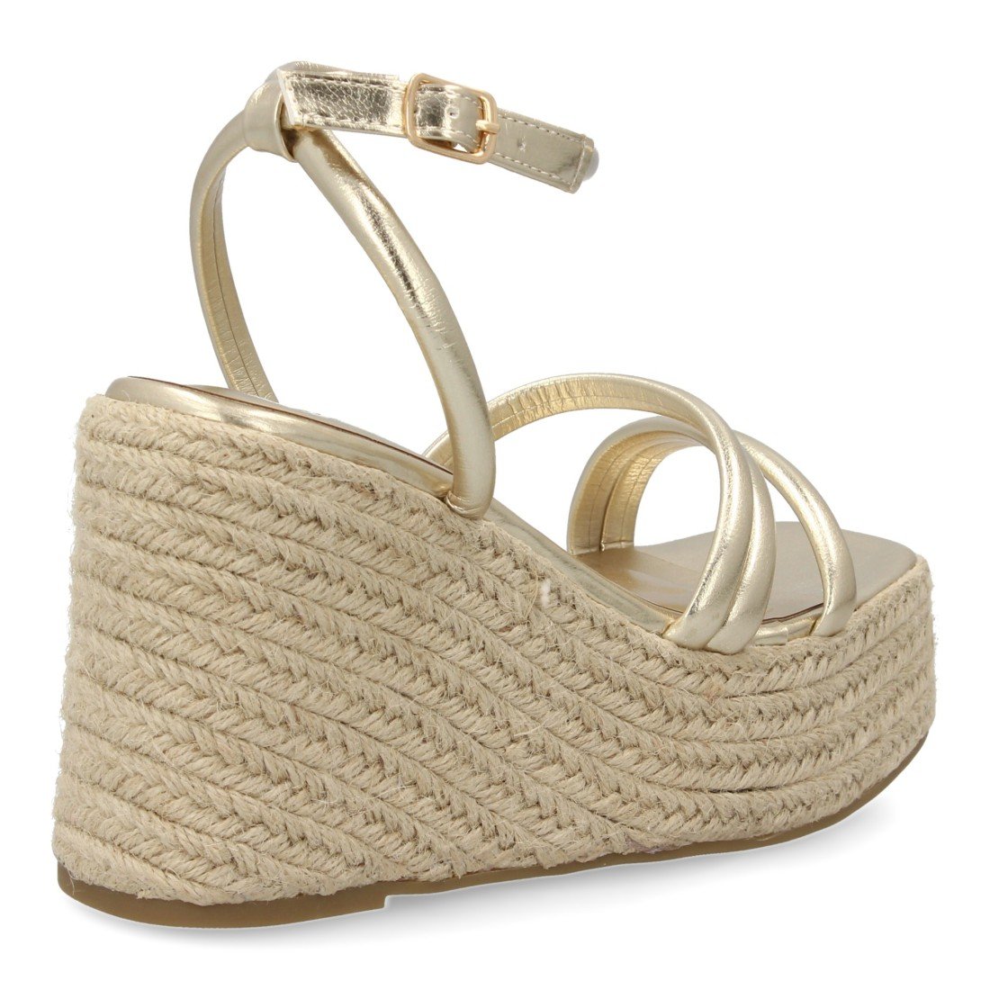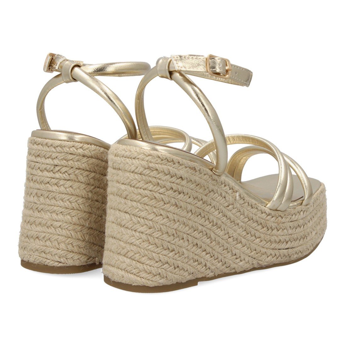 Sandalia de cuña de yute para mujer, diseño comodo y elegante con tiras cruzadas en la pala y cierre de hebilla, ideales para primavera verano.
