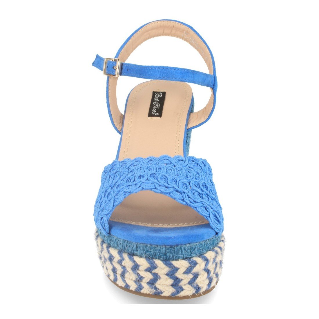 Sandalia de Cuña con Forrado Textil, para Mujer, con Yute Multicolor, Talon Abierto, Pala Trenzada en Ciculos, y Cierre de Hebilla Primavera Verano 2020