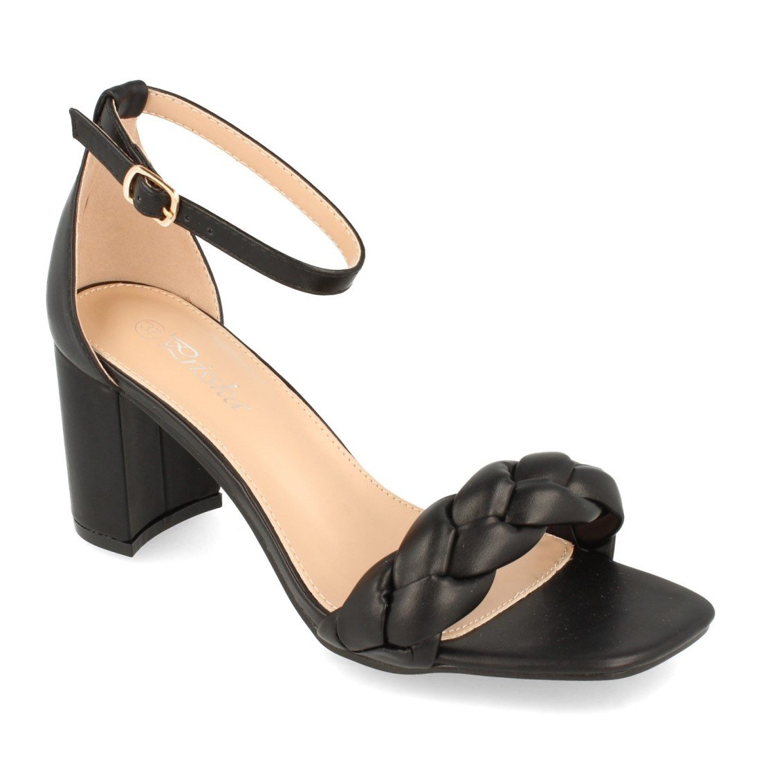 Sandalia de Tacón para Mujer, Comodas, con Pala Entrelazada, y Cierre Ankle Strap de Hebilla, Primavera Verano 2021
