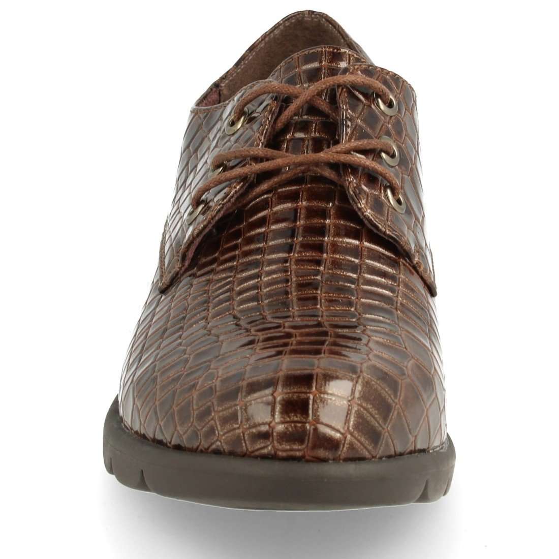 Zapato con cordones redondos y textura de serpiente.