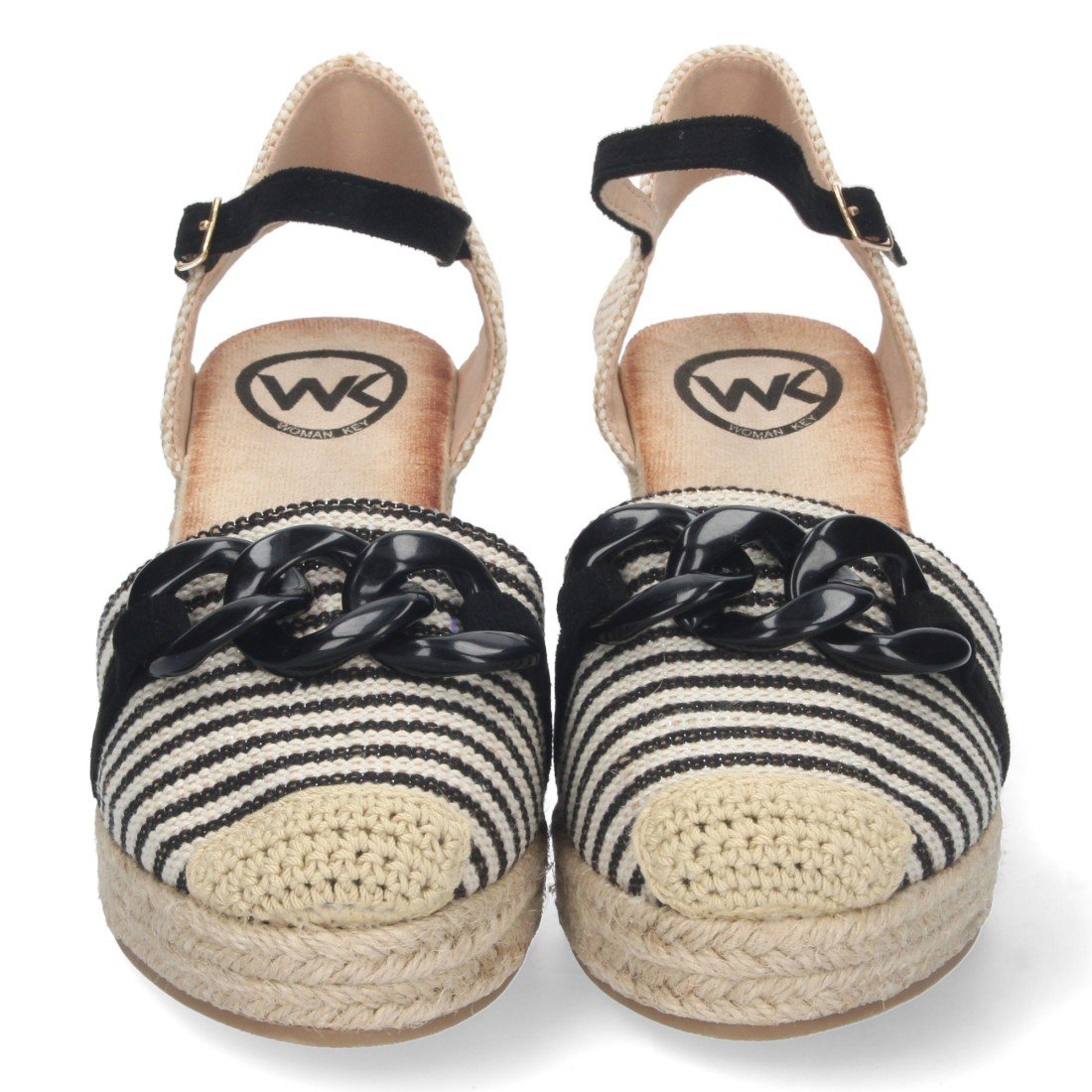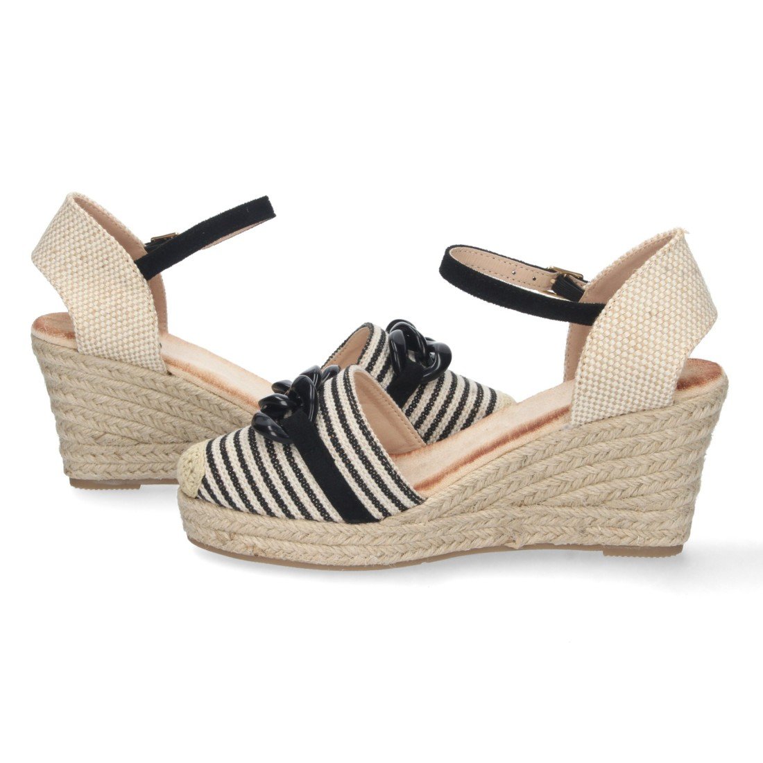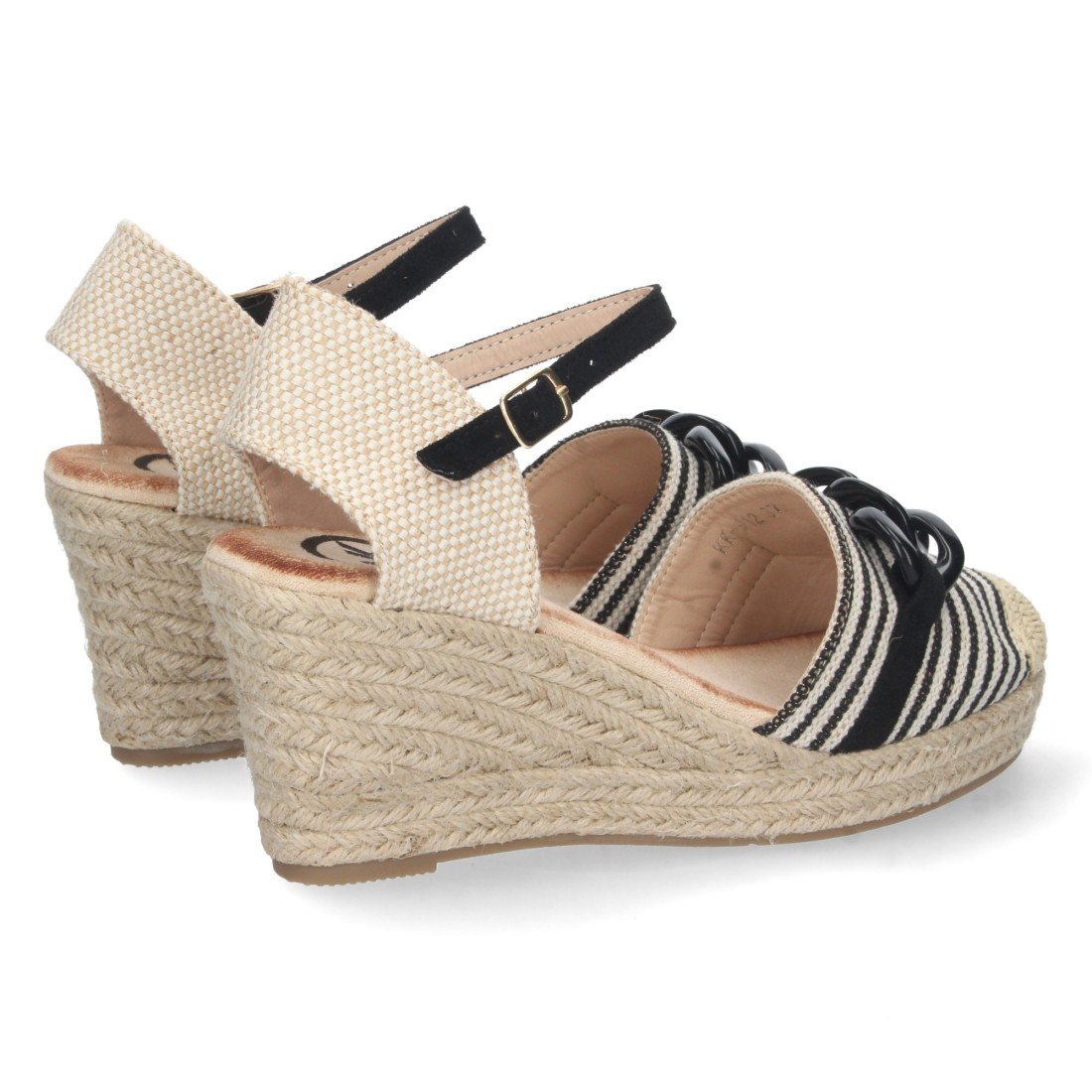 Sandalia de Cuña para Mujer, Forrada de Yute, con Cadena en la Pala, y Cierre de Hebilla, Primavera Verano 2023