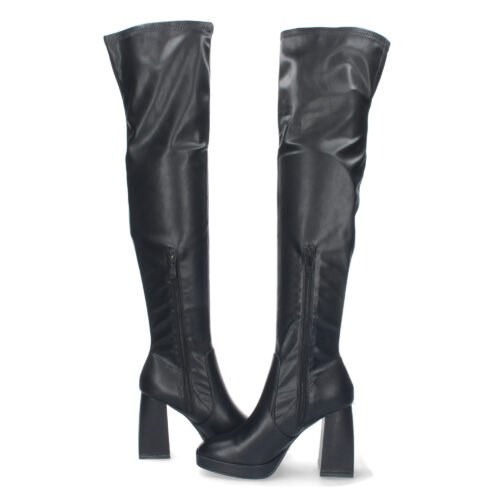Bota Alta de Tacon para Mujer Comoda con Mini Plataforma Estampado Liso y Cierre de Cremallera Otoño Invierno 2022