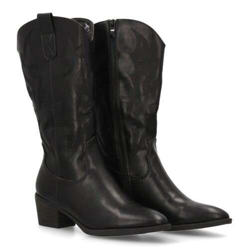 Bota cowboy con bordados decorativos en la caña y tacón ancho comodo. Diseño moderno con punta fina y cierre de cremallera. Ideal para mujer Otoño invierno.