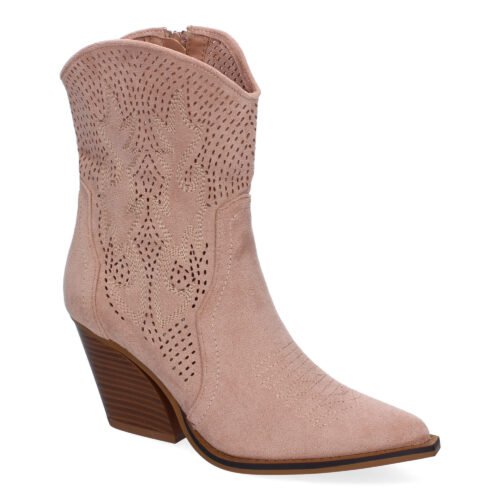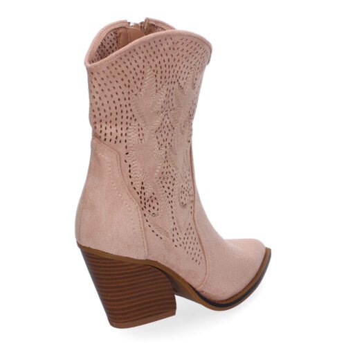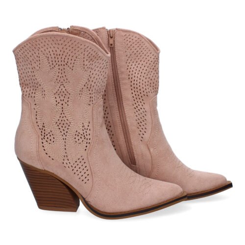 Botín Campero con Tacón Cómodos Diseño Calado con Bordado en Caña y Empeine y Cierre de Cremallera.