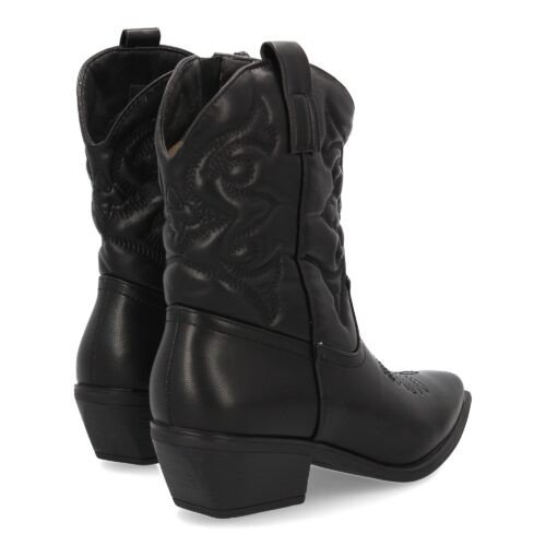 Botín estilo cowboy con bordados en la caña tacón ancho y punta fina. Estampado liso Diseño moderno con cierre de cremallera ideal para mujer en la temporada Otoño invierno.