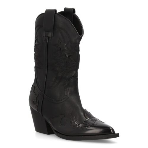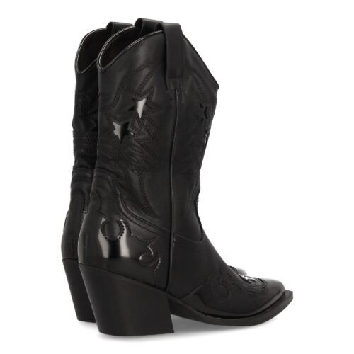Bota cowboy para mujer con diseño de estrellas brillantes. Punta fina tacón ancho medio. Cierre de cremallera. Ideal Otoño invierno.