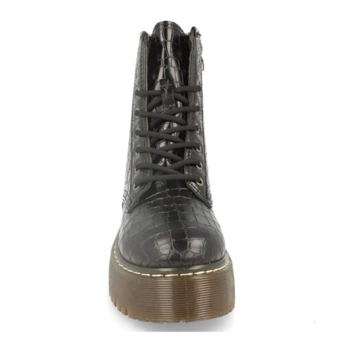 Botin de Mujer con Plataforma Grabado Efecto Cocodrilo Cierre de Cremallera y Cordones Otoño Invierno 2019