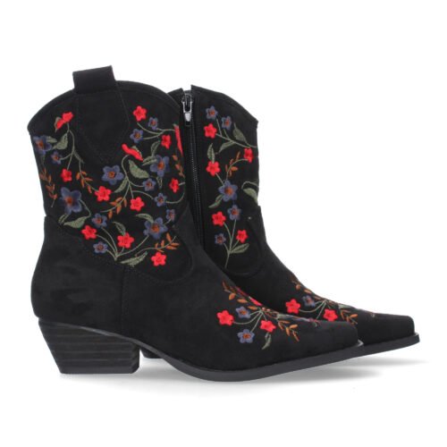 Botin de tacon comodo para mujer con estampado de flores en la caña y en la pala.