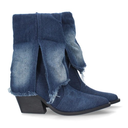 Botín de tacón para mujer cierre de cremallera forrada de tela vaquera.