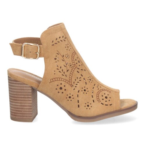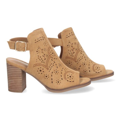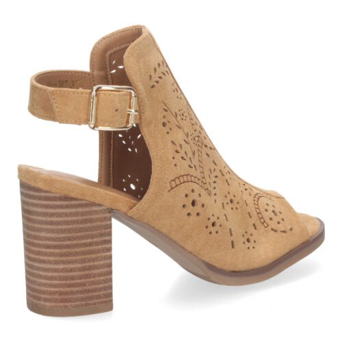 Botín de Tacón para Mujer Comodos con Calados y Punta Abierta Cierre de Hebilla en el Talón.