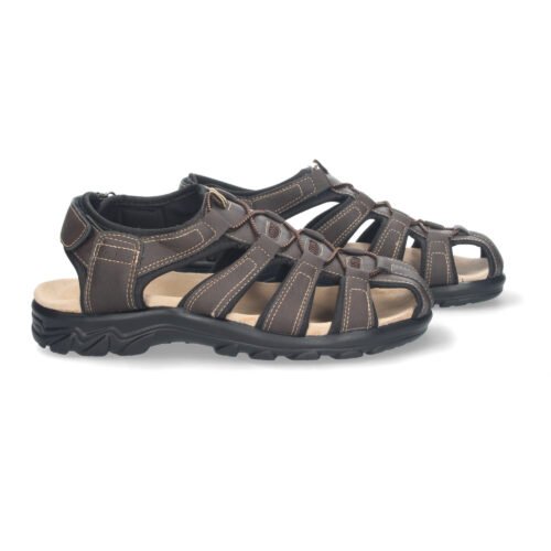 Sandalia Cangrejera Plana de Hombre Comoda con Planta de Piel y Cierres de Velcro.