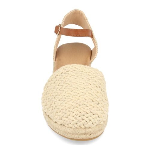 Sandalia para Mujer con Cuña de Yute Pala Cerrada de Rafia Talon Abierto y Cierre de Hebilla Primavera Verano 2023