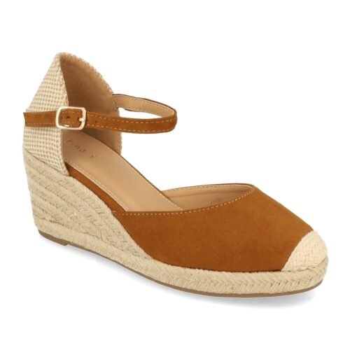 Sandalia de Cuña para Mujer Forrado de Yute Estilo Valenciana con Pala Cerrada y Cierre de Hebilla Primavera Verano 2021