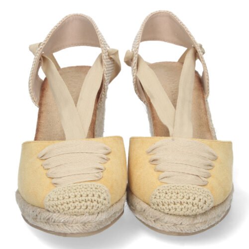 Sandalia de Cuña para Mujer Forrado de Yute con Pala Cerrada y Cierre de Cordones Primavera Verano 2022