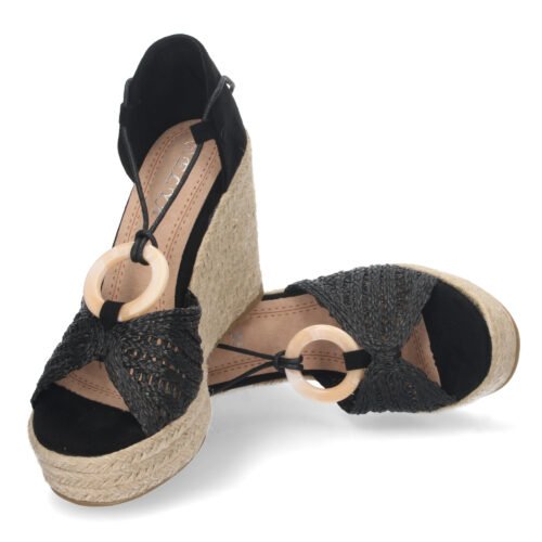 Sandalia de Cuña para Mujer Forrada de Yute con Pala Abierta Detalle en el Empeine y Cierre de Cordones Primavera Verano 2022
