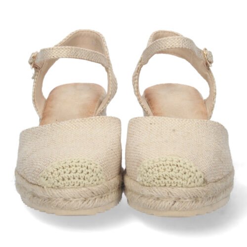 Sandalia de Cuña para Mujer Forrado de Yute Pala Cerrada y Cierre de Hebilla Primavera Verano