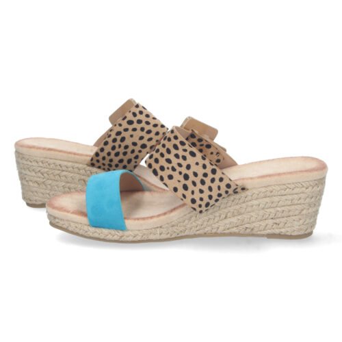 Sandalia de Cuña para Mujer Comoda Forrada de Yute con Estampado de Leopardo Hebilla y Talon Abierto